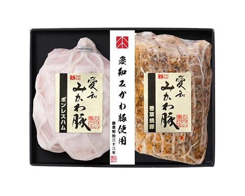愛知県は日本国内でも屈指の”おいしい豚肉の産地”です。「さっぱり」「もっちり」「旨味が濃い」、いわゆる「もち豚」のボンレスハムと焼豚をご賞味ください。