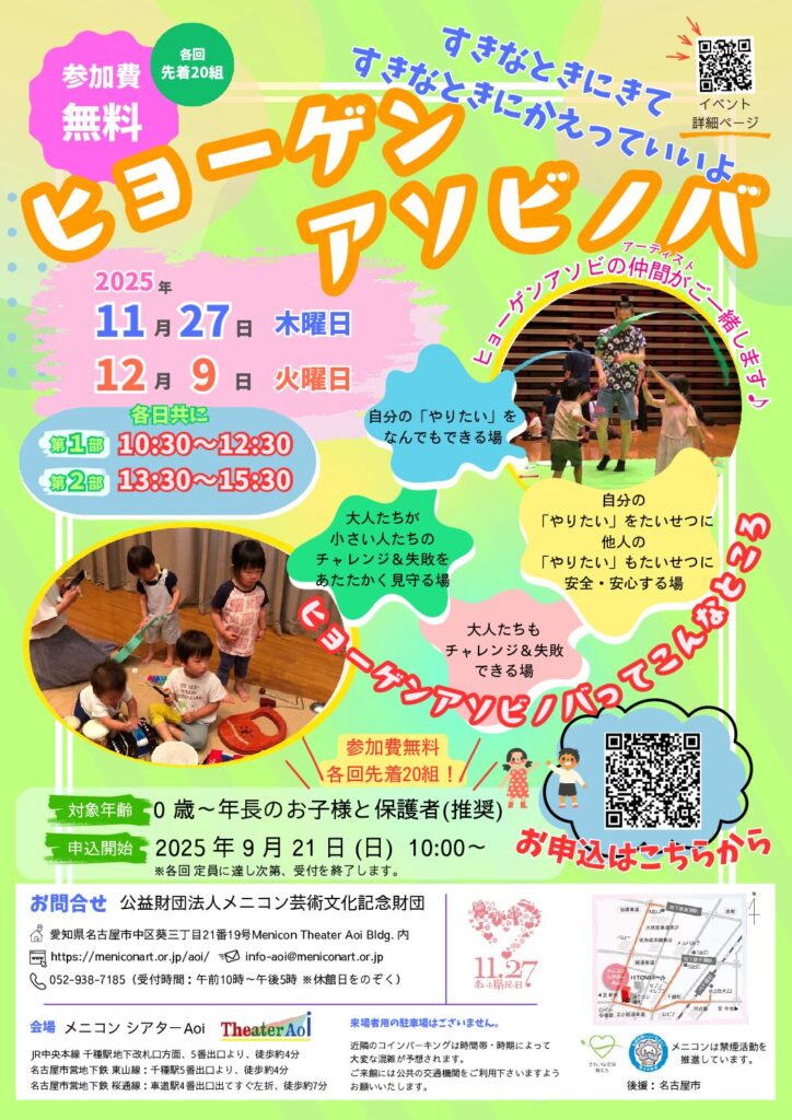 | 問い合わせ先 | 公益財団法人メニコン芸術文化記念財団 TEL:052-938-7185(受付時間:午前10時~午後5時) FAX:052-982-9108 Email:aoi@meniconart.or.jp |