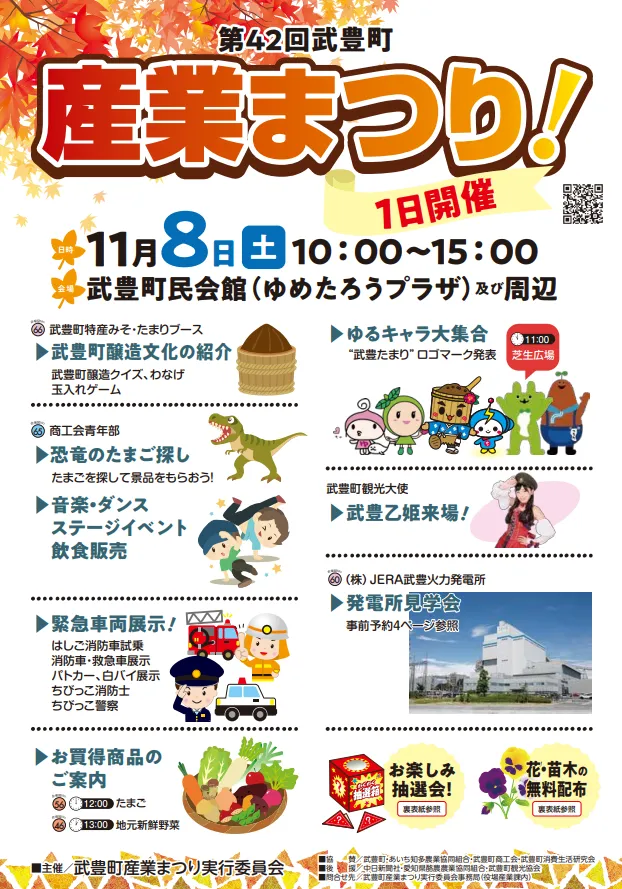 飲食・物販・体験ブースなど、武豊町の産業をギュッとまとめて楽しめるイベントです。
